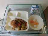 今年度初めての本日の給食は カツカレーライス・フルーツ白玉・牛乳です。 入学...