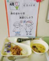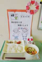 〜こどもの日の行事献立です〜 ごはん・きんぴらちらし・すまし汁・ちまき 「き...