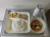 本日の給食は 金時豆の中華おこわ・中華スープ・ツナと野菜のオイスターソースいため...