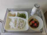 本日の給食は 牛肉と大豆のカレーライス・レタスのサラダ・ヨーグルト・牛乳です。 ...