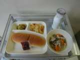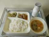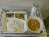 本日の献立は 鶏肉と野菜のスープ煮・カレーソテー・りんごのクラフティ・大型コッペ...