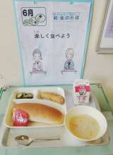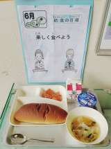 〜献立〜 パン・カレードリア・豚肉とキャベツのスープ・りんご(カット缶) 「...