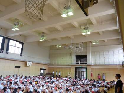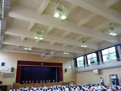今年の夏休みに、本校の体育館(講堂)の天井耐震工事を行い完成しました。2学期から使えるようになり、体育の時間、運動会の練習、集会など耐震整備された体育館で学習しています。工事期間中、地域の皆さまにはご迷惑をおかけいたしました。