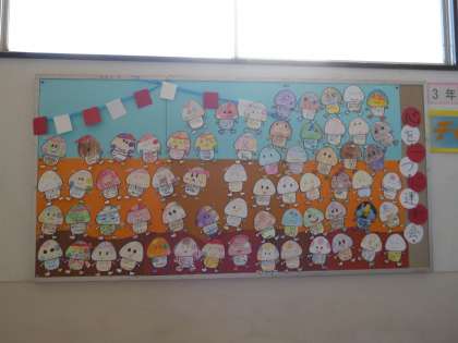 子どもたちの作品「夏休み新聞」「本の紹介・ポスター」「運動会にむけてがんばりたいこと」などを各学年の廊下に掲示しています。他の学年の子どもたちが足をとめて読んでいる姿を見かけます。楽しい内容が多くあります。