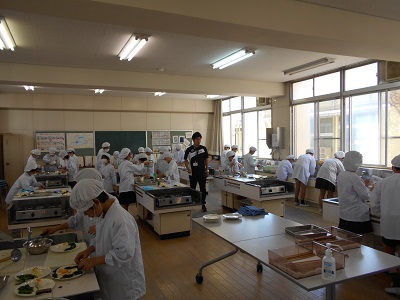 家庭科では、5年生が「ゆでる」調理の学習で、ゆでたまごとほうれん草のおひたしをつくりました。包丁やガスコンロの使い方を1つ1つおぼえ、安全に気をつけて、友達と協力して、おいしくできました。