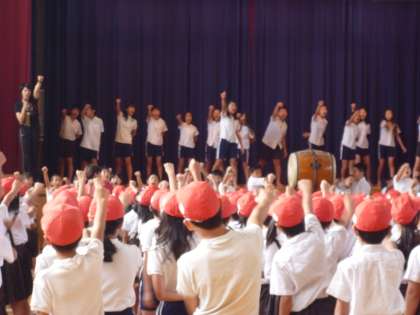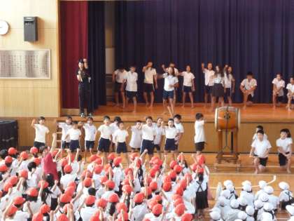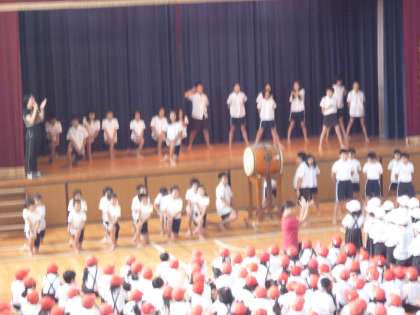 全校みんなで取り組む応援合戦の練習をしました。赤・白とも熱気あふれる練習となりました。先生も中に入って子どもたちと声を張り上げ指導にあたり盛り上げています。来週、運動場で本番さながらの応援合戦の練習をします。