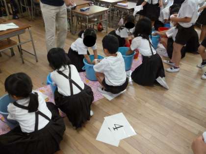 出前授業のお掃除の学習「きれいの種まき教室」を行いました。子どもたちは雑巾の絞り方やほうきの扱い方、何よりそうじをすることの良さについて学ぶことができました。