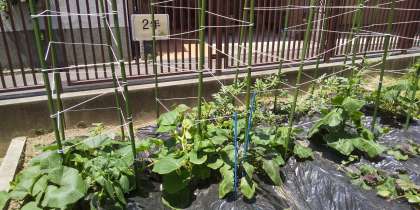 カボチャやサツマイモ、ナスビにピーマンなど様々な野菜の苗を植えました。すくすくと育つといいですね!