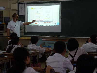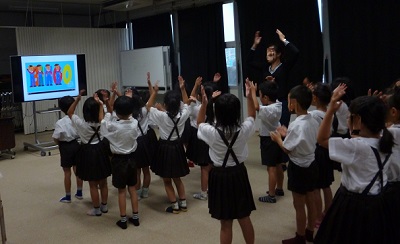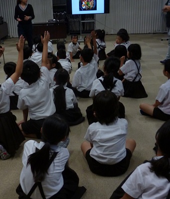 本校は毎週金曜日にC-NETの講師の先生に来ていただき、英語学習をしています。今日は5・6年生と2年生が学習しました。特に2年生は久しぶりの英語学習でした。ノリノリでリズムよく身振り手振りを交えながら歌い、英語に親しみました。「What・・・Do you like?」に「I like ・・・」と次々に会話していきます。とても楽しそうです。