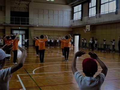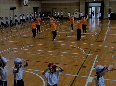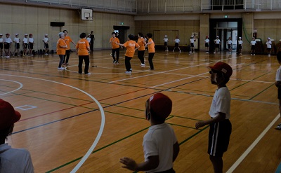 地域の民謡部の皆さんに来ていただき、3年生と踊りを通して交流しました。運動会のプログラムにもある「神路音頭」の細かい手や足の動き、しなやかな動作を教えていただきました。また、テンポの良い「ダンシング ヒーロー」も伝授いただき、子どもたちはノリノリで踊りを楽しんでいました。