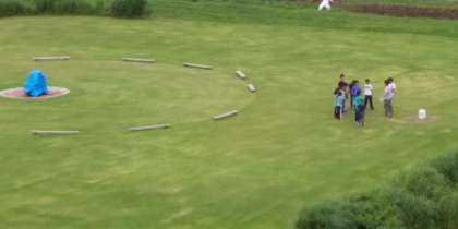 晩御飯前に係りの子どもたちがキャンプファイヤーの準備をしています。雨も降ってないので予定通り実施できそうです。\(^_^)/