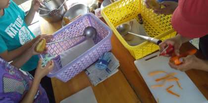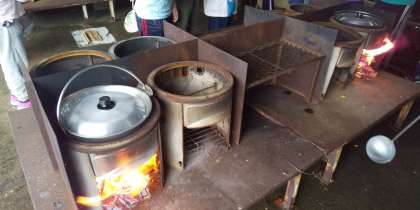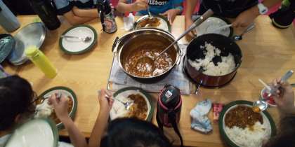 12:50 自分たちで人参、ジャガイモ、玉葱を切って、カマドの薪にマッチで火を着けて、一生懸命作ったカレーです。