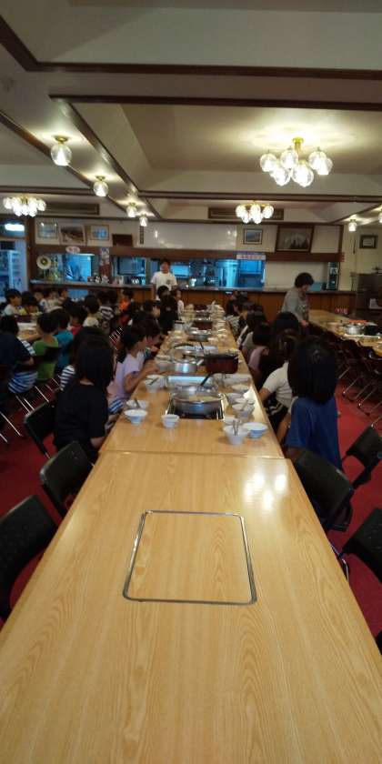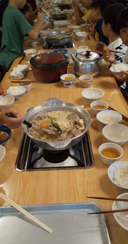 18:00 今日は登山をしたので「お腹すいた〜!」って、晩御飯が待ち遠しかった子どもたちです。鴨の出汁がネギや白菜に滲みてとっても美味しいお鍋です。ご飯がとってもすすみました。