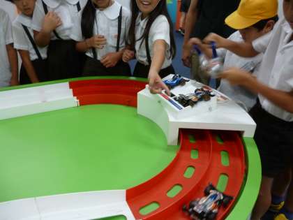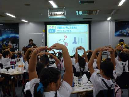 5年生が「パナソニック電池工場」へ見学に行きました。電池の種類、電池の作り方、オートメーション化された物づくりの生産ライン、安全安心を重視した職場での取り組み、など教えていただきました。クイズに答えたり身体を使ってゲームをしたり手回し発電機で充電したレーシングカーを走らせたりして楽しく体験学習にも取り組みました。。