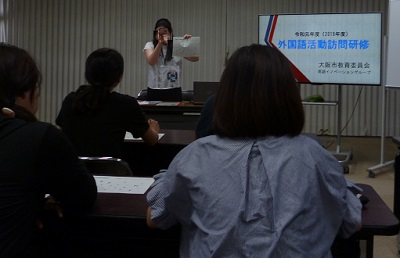英語イノベーショングループから講師の先生を招いて、来年からの英語教育実施に向けて研修を行いました。グループになり『指導者役』『児童役』にわかれて様々な指導形態のワークショップを取り入れた実りある研修になりました。