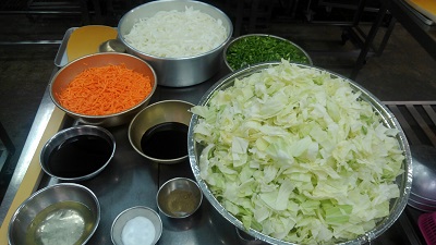 和風焼きそばは、豚肉を主材に、キャベツ、たまねぎ、にんじん、ピーマンなど野菜たっぷり、中華めんといためた、しょうゆ味です。子ども達が食べる時に、小袋のかつお節をかけました。おいしいと好評でした。
