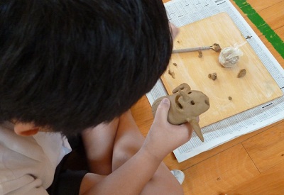 仁徳天皇陵が世界遺産に選ばれ、話題になっている古墳時代の学習の一つとして『ミニ埴輪づくり』を体験しました。近つ飛鳥博物館の学芸員さんに来ていただき、古墳時代の人々の生活の様子や願いなど古墳時代の背景を思い浮かべて歴史に親しみを持ちました。