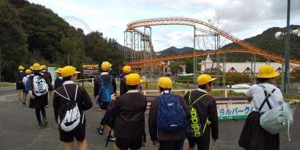 遊園地に移動、集合写真を撮影して先ずは班でお昼ごはんを食べてから楽しみにしていた乗り物に乗ります。