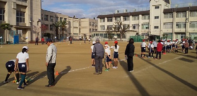 地域の老人会の方々にグラウンドゴルフを教えていただきました。初めてする児童も多くいましたが、アドバイスをもらったり自ら質問したりして楽しく和やかに地域の方々と交流することができました。