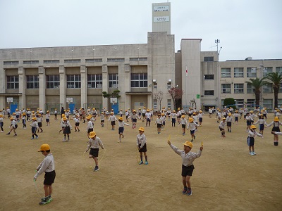 今週は低学年(1.2.3年)の縄跳び週間です。20分休憩の時間帯に縄跳びの新しい技や連続して跳ぶ跳び方などを教えてもらい練習します。高学年の運動委員会が各クラスの中に入って補助しています。また、縄跳び頑張りカードを励みに他の休み時間も縄跳びの練習に取り組んでいます。
