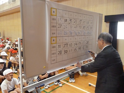 学級休業のクラスがあったため実施が一週間伸びた「おおなわ大会」を行いました。小雨が降ってきたので、体育館での大会となりました。11月初旬から神路っ子グループで練習をはじめ、グループの気持ちは高まってきていました。「一人一人笑顔で気持ちを合わせてがんばろう」のテーマに向かって各チーム頑張っていました。回数の計算は、珠算名人の校長先生にお手伝いしていただきました。勝ったチームに児童会からメダルが渡されました。
