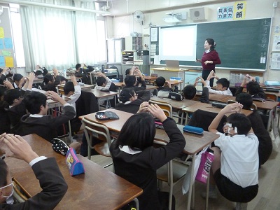 中学校から英語の先生が来校され、出前授業をしていただきました。大きな動作を交えてアルファベットを表現したり「Show me something red」の指示に自分の持ち物の中からその色のものを探したりしました。活気ある学習に子どもたちは、夢中でした。