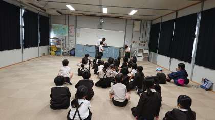 この日は、1時間目に1組、2時間目に2組が外国語活動を行いました。英語での自己紹介の仕方や、色の名前などを学習しました。子どもたちは緊張することもなく、元気に英語で受け答えをしていました。