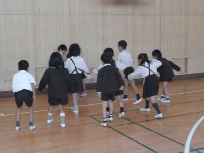 2年生が育てたさつまいもを調理して1年生を招待しました。司会やあいさつもりっぱにして仲良し班でおいしくやきいもを食べました。食後2年生がリードして班で考えた遊びをなかよく楽しみました。
