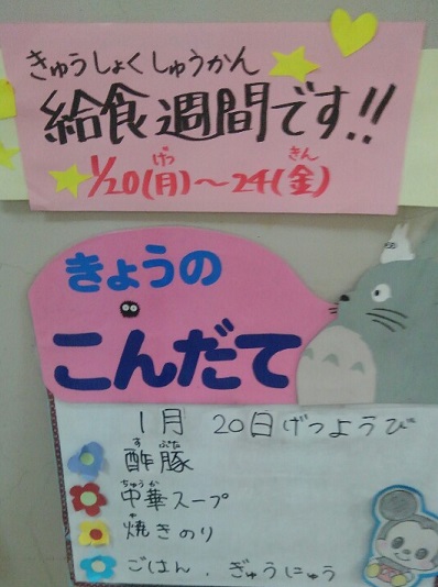 昔、給食が始まった1月24日の給食記念日にちなんで、神路小学校では、毎年1月この時期を、給食強調週間として、いろいろな取り組みを行っています。
