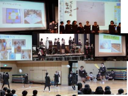 クラブ活動の一年間のまとめ「クラブ発表会」を講堂で行いました。それぞれの特徴を生かした発表でした。3年生は来年度入りたいクラブを考えながら観ていました。
