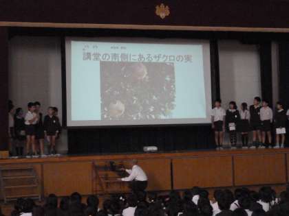 児童集会「飼育栽培・広報委員会」発表
