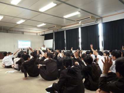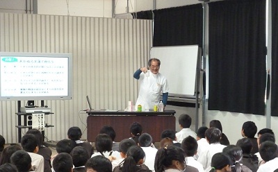 11月14日(金)に6年生が、学校薬剤師の先生と薬の飲み方や副作用について学習しました。薬を飲む時や飲んだすぐ後に、ジュースやお茶を飲むと薬の効き目が弱くなったり、逆に効きすぎたりします。そのことを実験やクイズ形式で紹介され、子ども達から驚きの声も上がっていました。また、たばこや違法薬物の害も知り、自分の体は自分でしっかり守っていこうという意識が高まりました。