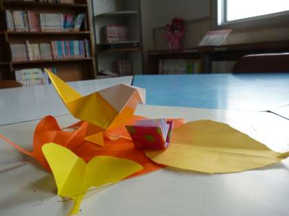 図書ボランティアさんが、朝の読書タイム時に本の読み聞かせに来てくだっています。今回は20分の休み時間にお話会を開いていただきました。「あるいています」「きつねのおふろ」の2冊を子どもたちは聞き入っていました。おもしろい場面では笑みがこぼれ、本に親しんでいました。また、図書室には季節を彩る掲示や机上のかわいいオブジェを手作りしてくださり、環境整備にもお手伝いしていただいています。