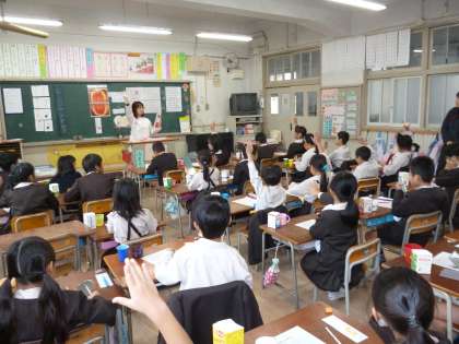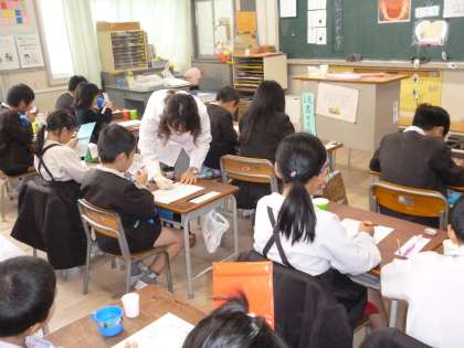 歯科衛生士さんに来ていただき、正しい歯みがきのしかたを学習しました。前歯に歯垢染色して磨き足らないところを自分でみつけ、どのように歯ブラシを動かせばきれいに歯垢をとることができるのかを考えながら歯みがきをしました。手鏡で口の中をみて一生懸命に磨いていました。