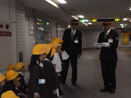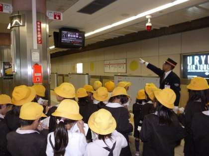生活科の学習で「町探検」の一つとして公共施設の駅を探検しました。地下鉄の駅のようすを見学したり駅員さんに質問したりして、よく利用する交通機関の仕組みや利用者への配慮などを知りました。真剣にメモを取ったり疑問に思ったことを質問したりして意欲を持って取り組んでいました。