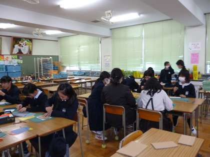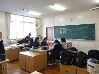 手芸部は「幼児のおもちゃづくり」、アート部は「光にかざすデザイン」の製作に取り組んでいました。やさしく教えてもらった6年生は緊張の中にも笑顔がみられました。