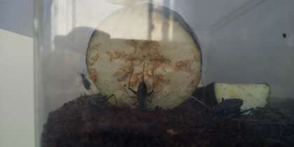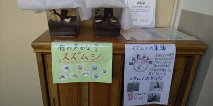神路小学校の校長室前にスズムシの飼育ケースを設置しました。十数匹のスズムシがステキな鳴き声を響かせてくれています。運動場や教室は、まだまだ真夏の暑さですが、「リーン、リーン」という涼しげな鳴き声を聞くと、秋の気配を感じることができます。