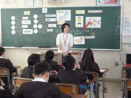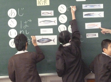 栄養教諭の先生に「魚のはたらき」について教わりました。給食にでる魚の名前を班で考えたり魚のパワーに気付いたりして、魚に含まれている栄養素の大切さを知り、進んで魚を食べるよう意欲を高めました。