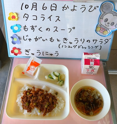 ちょうど、6日の給食も、8年前の神路小学校の当時の6年生が考えて、コンクールで選ばれた「タコライス、もずくのスープ」でした。「同じように、今年も選ばれるといいなあ。」と、みんなで楽しみにしています。