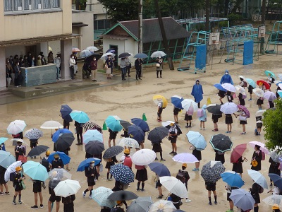 この引き取り訓練を始めて、初の雨天での訓練でした。大変な天候の中でしたが、保護者の皆さまのご理解、ご協力のおかげで実施することができました。ありがとうございました。