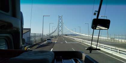海の向こうに神戸の街が綺麗に見えます。北淡震災記念公園にはほぼ予定通りの到着となりそうです。