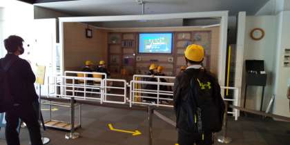 北淡震災記念公園の野島断層保存館を見学しました。25年前に起こった阪神淡路大震災の様子を職員の方からお聞きしました。北淡町では、どこの家の誰がどこで寝ているとかも近所の方がわかっていたので、建物の下敷きになった住民を助けることができて、震災当日の夕方5時には、行方不明者がゼロになったそうです。みんなでコミュニティーの大切さを学びました。実物の断層を見学して震度7の揺れも体験することができました。