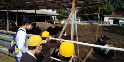 昼食後は牧場内を散策して牛さんたちと触れ合いました。