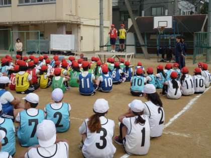 同じ中学校校下の小学校の6年生とスポーツを通して仲間意識を高める交流を行いました。本校の児童のあいさつで始まり、終わりには正門のところで両サイドにならび、相手校の6年生を見送り、4月に同じ中学校で出会う楽しみをかみしめていました。