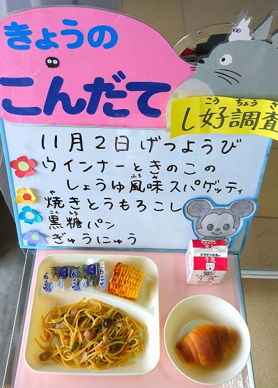 ウインナーときのこのしょうゆ風味スパゲッティ好評 11/2
