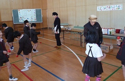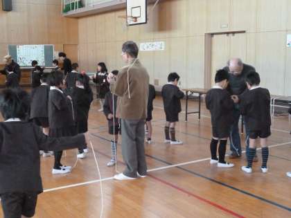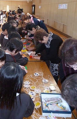 地域の人たちに1年生が昔あそびを教えていただきました。コマあそび・けん玉・折り紙などを楽しく遊びながら学習しました。