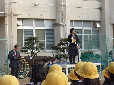 今朝の全校朝会での校長先生の校話は「2月8日(日)にあるPTAかみじウインターフェスタの本の読み聞かせ」についてでした。「みんなのおすすめの本はなにかな?」とアンケートを呼びかけられました。そのランキングは当日発表があるようです。校長先生のお勧めの本も紹介されました。