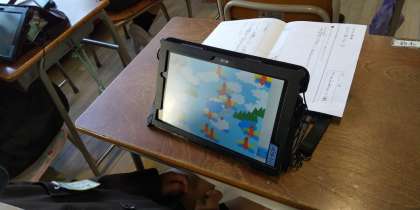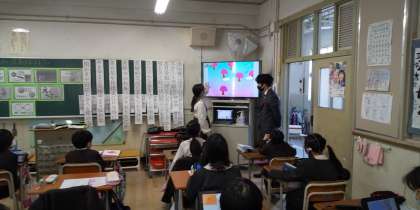 そして、みんなの前で大きなモニターに映して発表しました。子どもたちの表現力の豊かさが大いに感じられる授業でした。