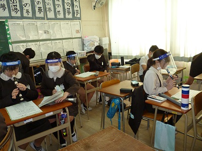 コロナ禍で学校休業があったための授業時間確保の一つ『6年土曜授業』を本日実施しました。6年生だけの登校。静まり返った校舎に6年生の学習する声だけが聞こえてきます。タブレット使ってグループで調べ学習をしているクラス。学習発表会に向けてグループで演奏の練習をするクラス。それぞれの課題に熱心に取り組んでいました。