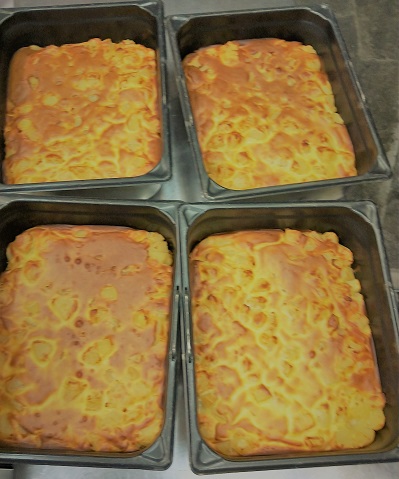 「クラフティ」とは、フランスの伝統的な焼き菓子です。「クラフティ」とは、フランス語で「いっぱいつめる」という意味があります。給食では、ミニバットにコーンフレークをしきつめて、りんごの缶づめと小麦粉、砂糖、卵、クリームを混ぜたものを流し入れて、オーブンでこんがりふっくら焼きました。子ども達は「おいしい」とパクパク食べていました。